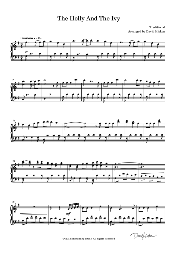 Jessica S. I came across David Hicken's Holly and the Ivy when searching for sheet music for the song. His version is so beautiful and not too difficult for me. I played it all season long last year! Thanks for a beautiful piece!