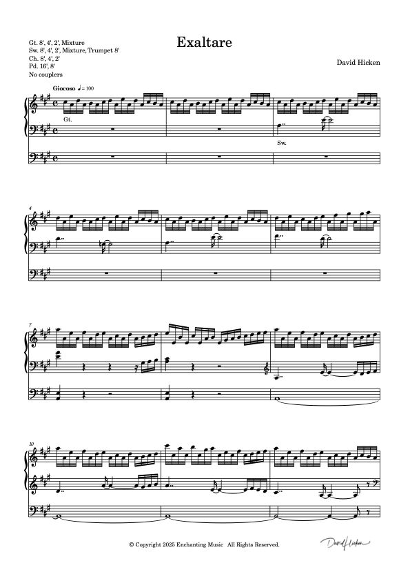Michael Perrier An excellent piece with a great mix of rhythmic kick and “moto perpetuo” continuity. I shall enjoy learning this, as will my congregations / audiences in hearing it. Bravo David.