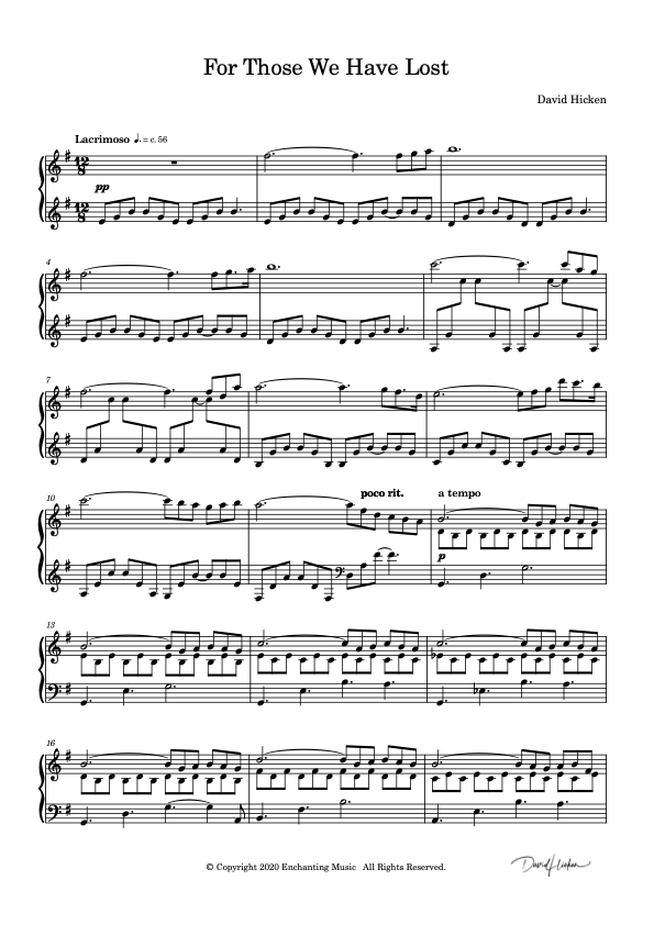 Viviana Just started to learn For Those We Have Lost. The mere fact of just practicing it gives me that sought-after tranquility. Awe-inspiring, like all of David's work.