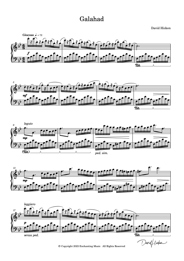 HI, David. I am extremely happy with the last scores i bought: Galahad and The Quest. It really cheer me up , lifty my spirits and are so beautifull than i spent a while to stop my mind cause your music refuse to dissapear as if they have their own life. Thank you so much for your music. They are invaluable treasures and make ours lives happier.