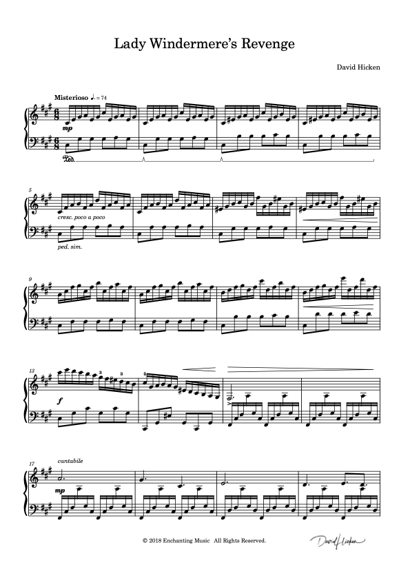 Konstantina Papa Such an amazing, powerful piece...In my opinion, the piece expresses a gradual anger through a colourful melody. Every music bar that I practice introduces me to Lady Windermere's chaotic psychic world. Even though she isn't an existing person, this piece brings her to life and it seems she is narrating her story to us, while she's plotting her revenge. Mr Hicken achieved all these on one single piece, and that's magnificent.