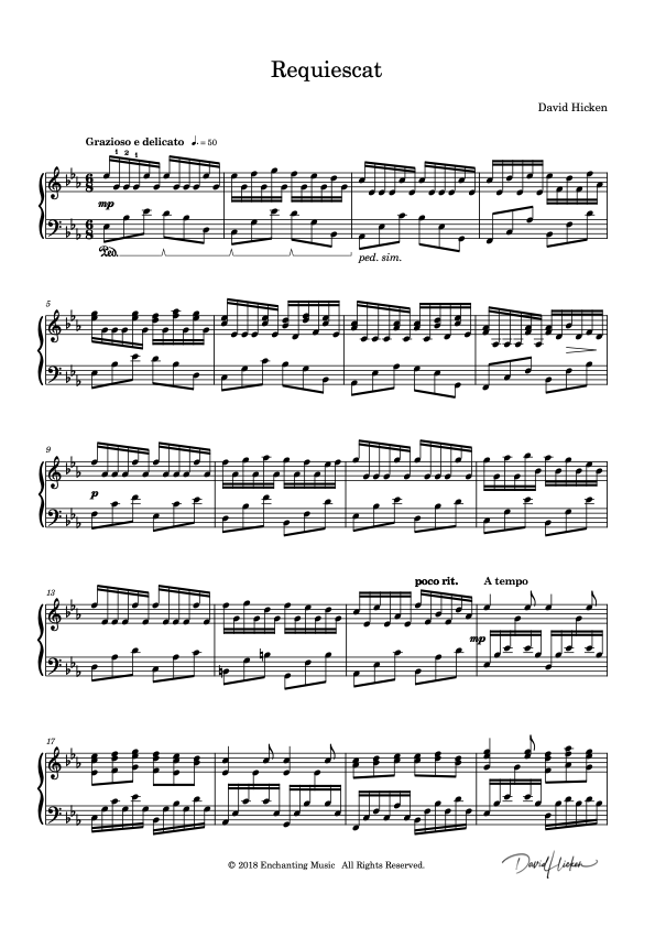 Bethany This is a beautiful composition! Lovely themes, and while not hard to play, it gives a competent player enough technique/fingering to figure out. Requiescat is one of my all-time favorites!
