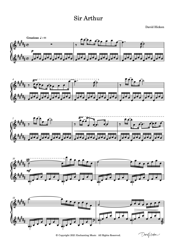 I was looking for one of David's slower pieces to learn, and "Sir Arthur" may be my new favourite! The melody is gorgeous, and the harmonies accent it perfectly. It's fun and easy to play, which is a great combination. I especially love the story behind the piece as well, which makes it even more special. I'm looking forward to learning the rest of this piece.