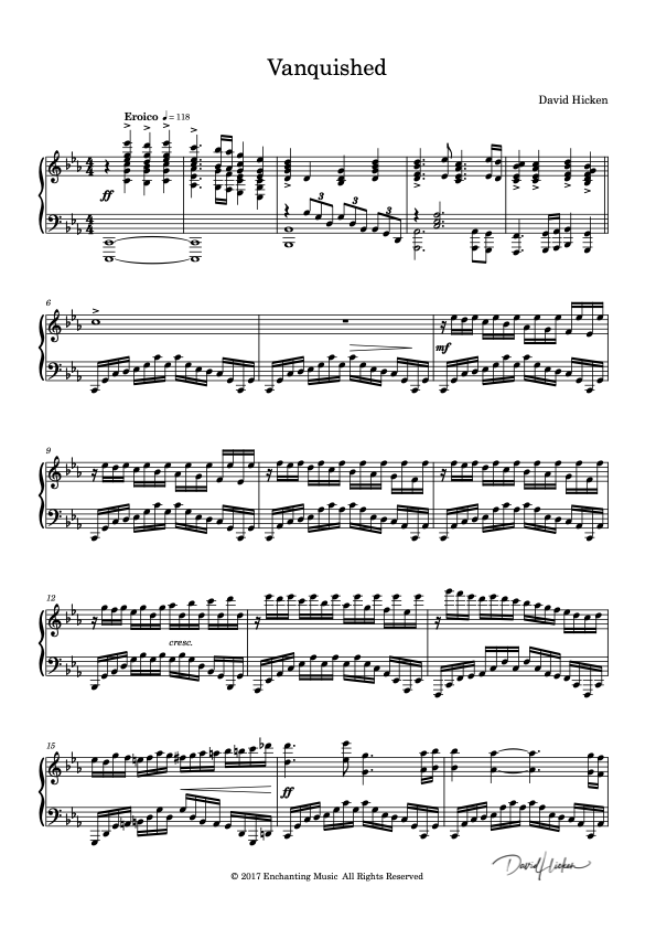 The interesting part of Vanquished is that I feel like it’s very technichal. It has many ”scales” and really requires you to make the melody get heard cause the left hand play A LOT and it can easily overpower the right hand.
